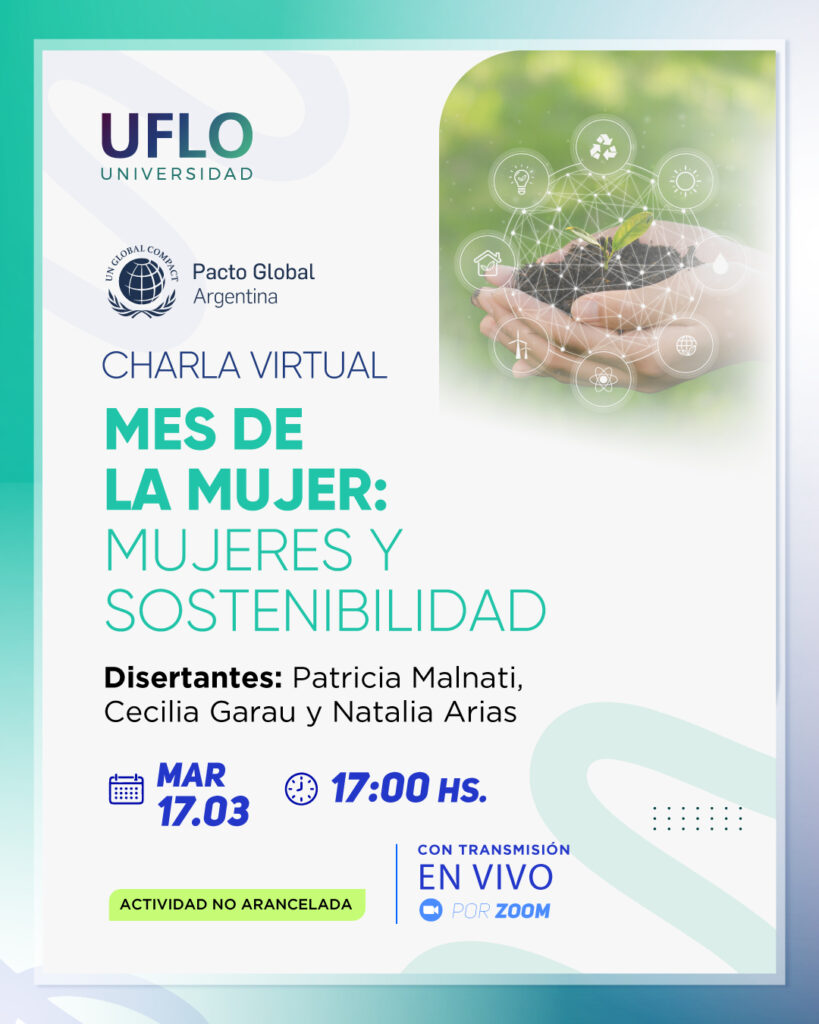 En el marco del mes de la mujer, UFLO Universidad y Pacto Global Argentina de la Organización de las Naciones Unidas (ONU) se unen en un encuentro que pone en diálogo Mujer y Sostenibilidad desde tres miradas complementarias: el vínculo entre sostenibilidad, cuidados y los avances institucionales de UFLO; el aporte del Pacto Global y la experiencia de liderazgo femenino en la industria; y la dimensión social de la transición hacia modelos productivos sostenibles.