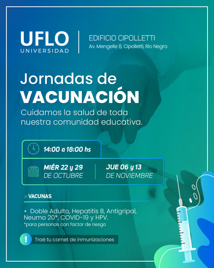 Junto al Hospital A. P. de Cipolletti y el área de Inmunizaciones tiene como objetivo garantizar la protección sanitaria de la comunidad universitaria