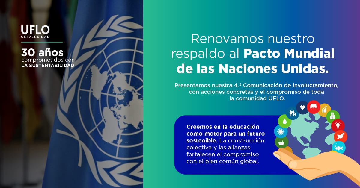 UFLO Universidad renovó su compromiso con el Pacto Global de Naciones Unidas, reafirmando su adhesión a los 10 principios y su apuesta por una gestión institucional basada en la sostenibilidad.